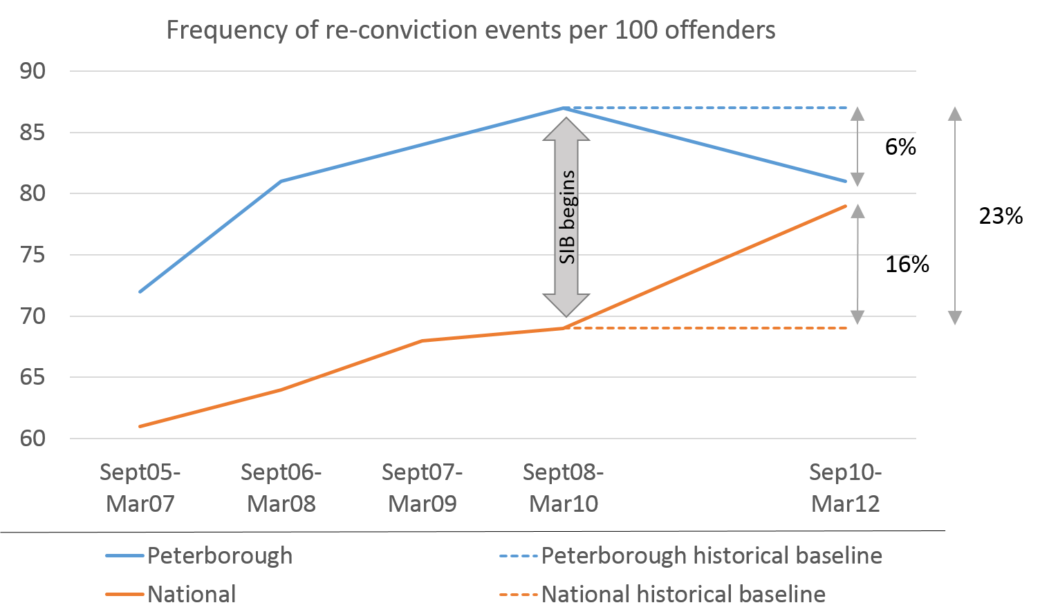 “Say, for example, that a £10 million, five-year SIB for reducing recidivism delivers an 8% financial return and significant social impact by succeeding in rehabilitating 1,000 youth offenders, each of whom would have cost the UK government £21,268 a year. Using the Unit Cost Database gives a value for the social outcome in just the first year of £21 million, and an associated social return per annum of about 15% (internal rate of return) for the SIB” (p.16).
