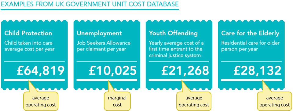 Let’s take a look at types of unit costs and how they are calculated. And then see what this means using the reoffending unit cost examples from the NSW Government’s Office of Social Impact Investment: